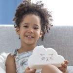 Een originele lamp met regenboogprojector en stickers, ideaal voor het decoreren en verlichten van kinderkamers. Deze originele, multifunctionele LED-lamp is perfect voor gebruik als nachtlamp en helpt kinderen ontspannen en in slaap te vallen. Hij bevat ook 8 herbruikbare, decoratieve stickers, zodat de kleintjes elke avond plezier kunnen hebben bij het personaliseren van hun lamp. Hij werkt op 3 x AAA batterijen (niet inbegrepen) en is zeer eenvoudig te gebruiken, aangezien hij een enkele aan-/uitknop heeft om hem uit en in te schakelen. De lamp heeft de vorm van een wolk, wit licht en projecteert een regenboog op de muur vanaf de achterkant. Om van het regenboogeffect te kunnen genieten, rainbow effect, the room should be dark and the lamp should be placed very near to the wall (a distance of between 5 and 15 cm approx.). As it is lightweight and portable, it can easily be used anywhere, without cables or plugs, and for greater safety, it will not heat up or cause burns.